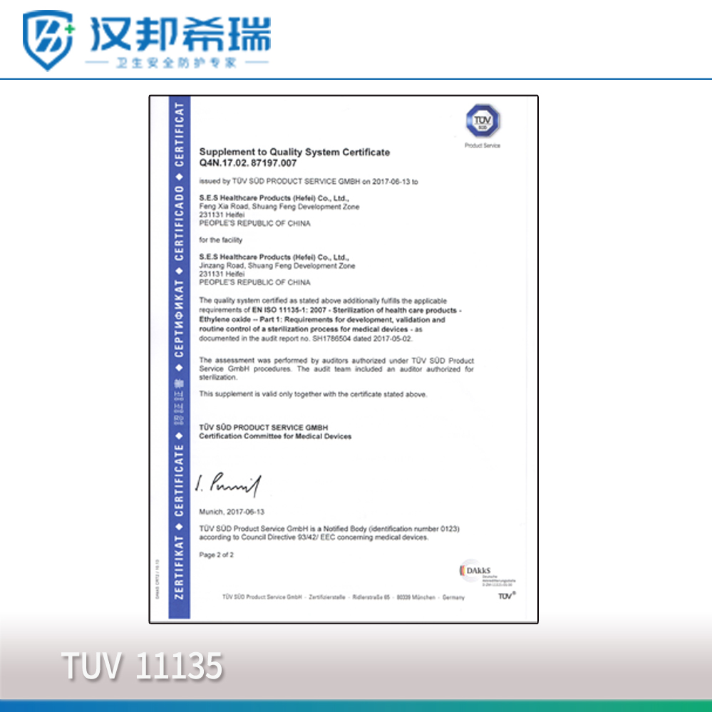 2014年公司建立自己的環(huán)氧乙烷滅菌中心,擁有一臺先進的50立方米滅菌柜,2間獨立分區(qū)的預處理房和4件獨立分區(qū)的解析房,采用日本AIRWATER公司生產(chǎn)的99.99%純環(huán)氧乙烷進行滅菌。